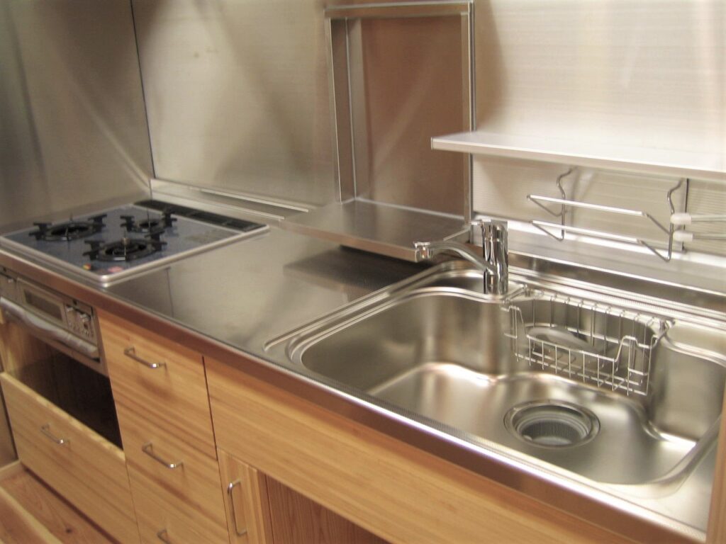 台所(リフォ-ム後):シックハウス対策のため既製品の流し台のステンレストップのみ使用