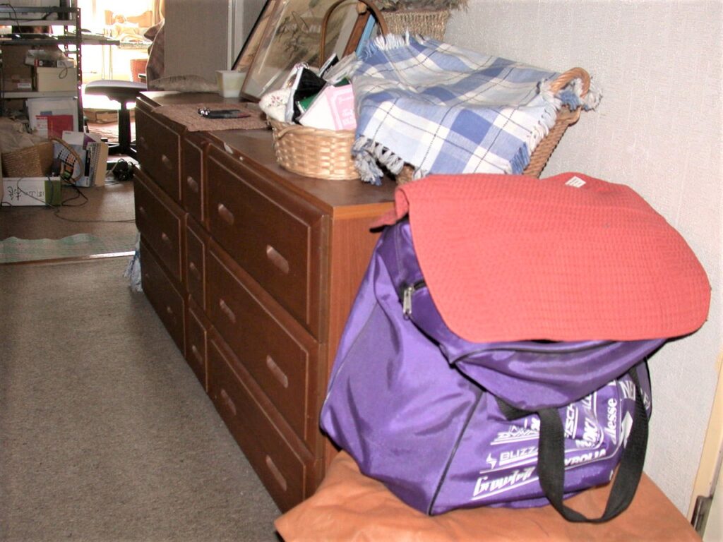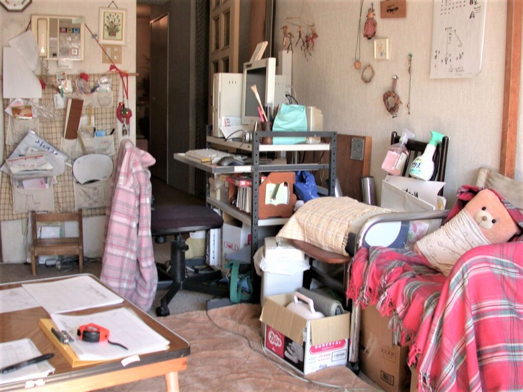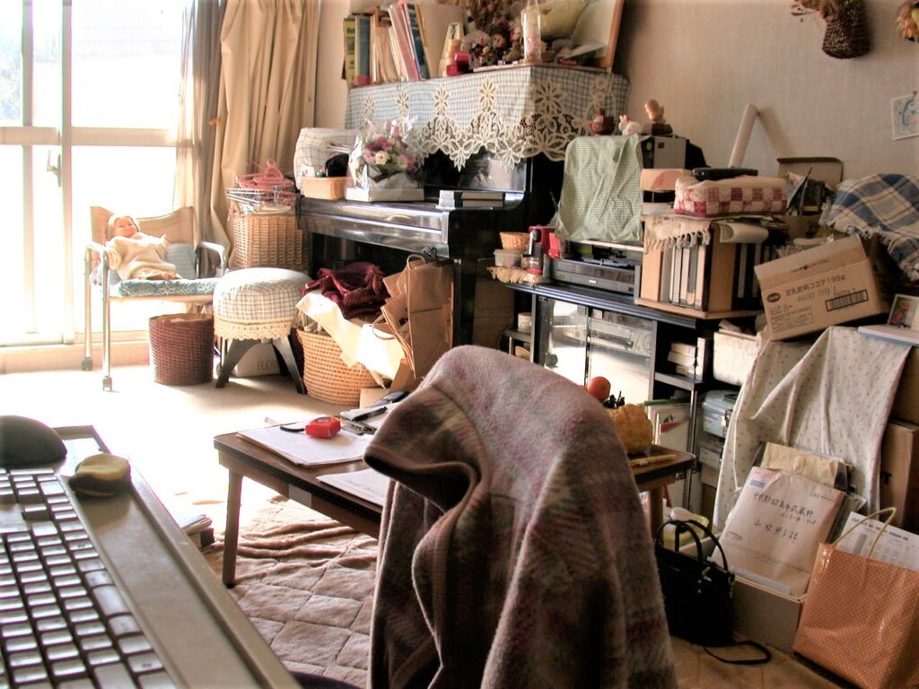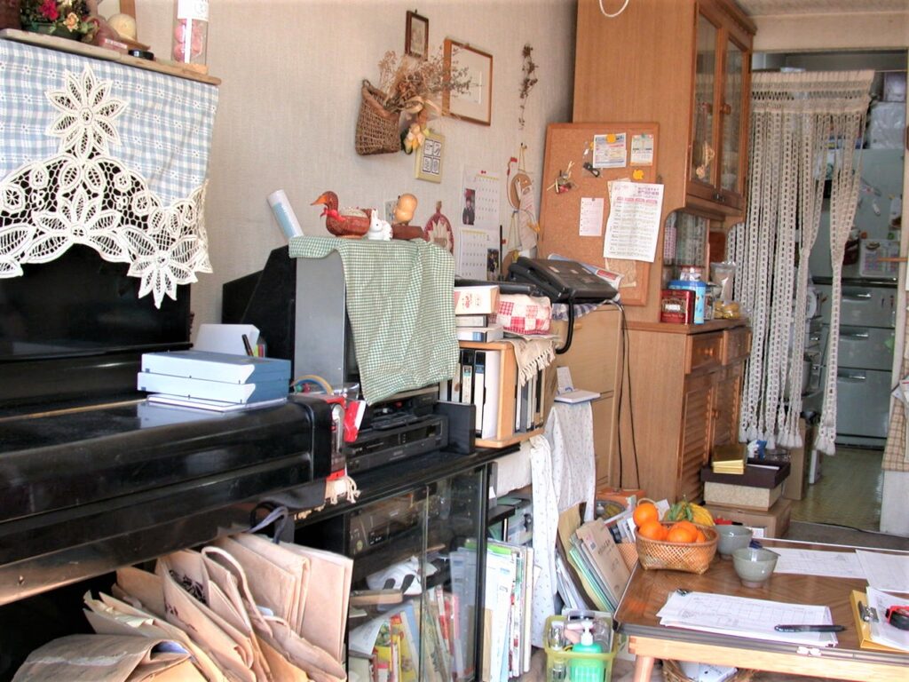 リビングダイニング(リフォ-ム前):収納不足で物が溢れている